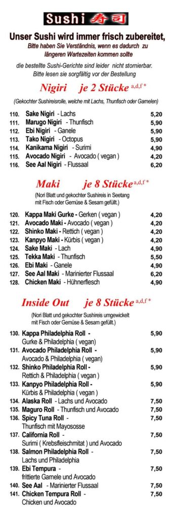 Auch bei unserem Sushi achten wir auf sauberen und frischen Fisch und bereiten diese immer frisch zu.
